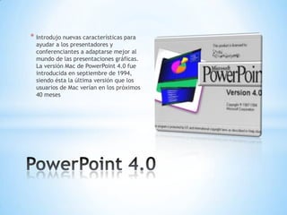A continuación, se detallan algunos de los principales acontecimientos en la historia de PowerPoint: